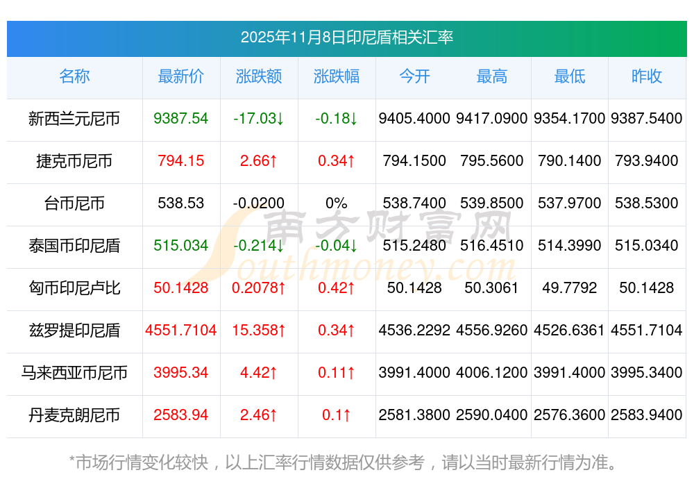 2025年11月8日印尼盾相關匯率查詢