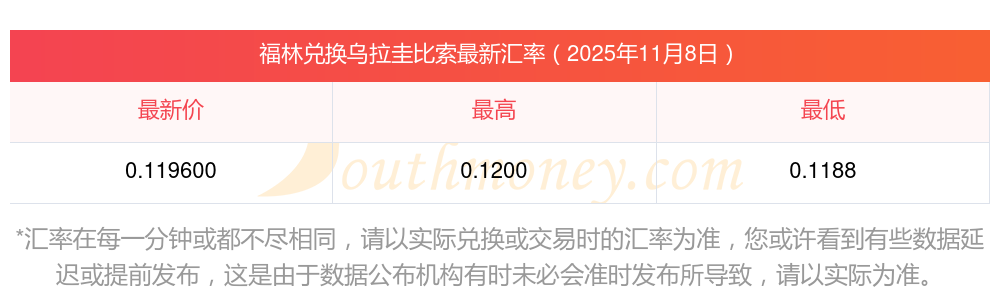2025年11月8日福林兌換烏拉圭比索匯率是:0.1196