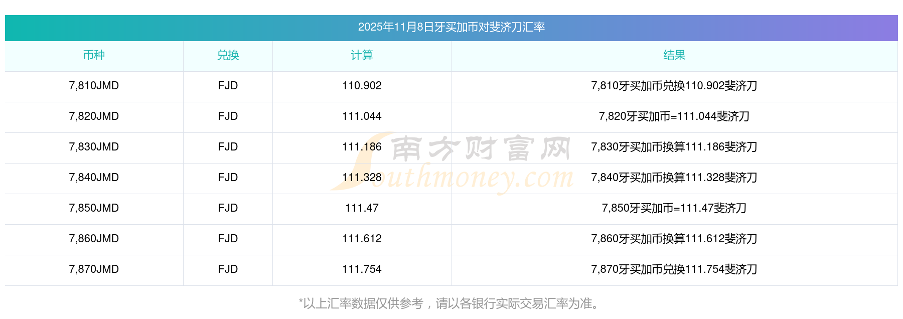 今日匯率多少:1000牙買(mǎi)加幣對(duì)斐濟(jì)刀匯率多少?2025年11月8日