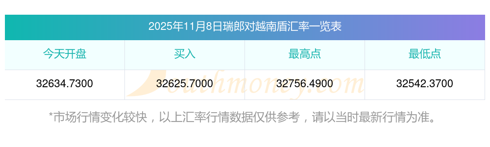 瑞士法郎對越南盾的匯率是多少?11月8日