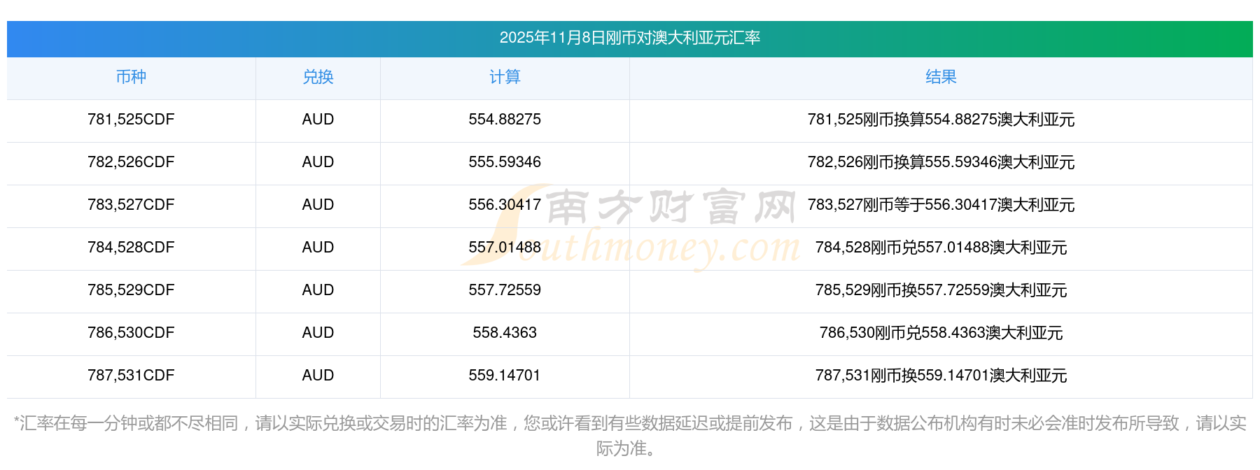 剛幣對澳大利亞元匯率行情一覽(2025年11月8日)