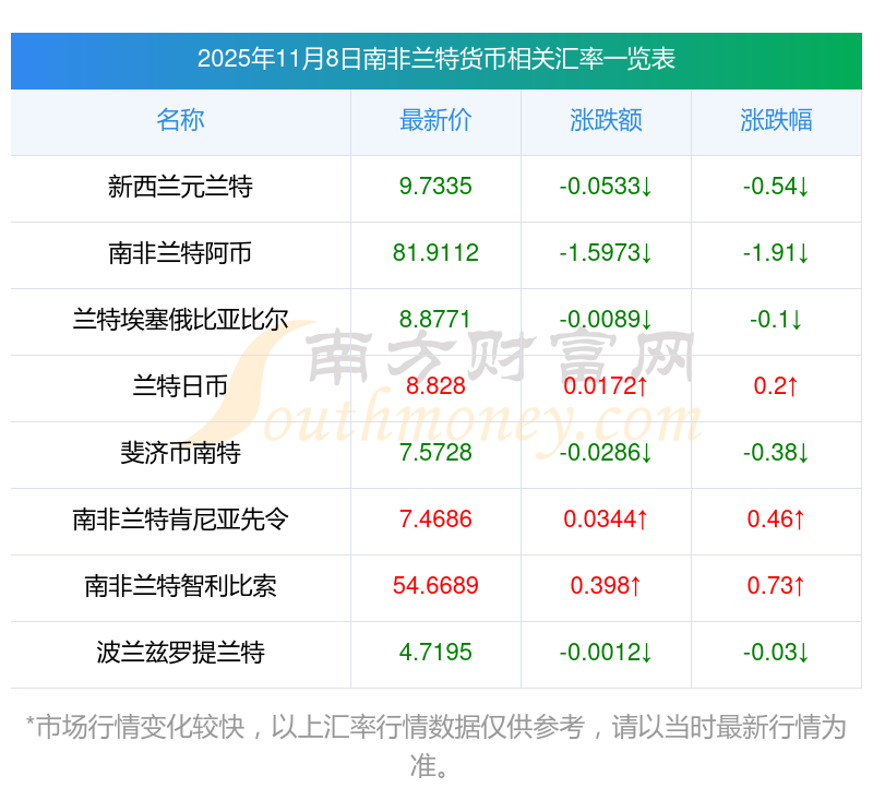 2025年11月8日南非蘭特相關(guān)匯率查詢