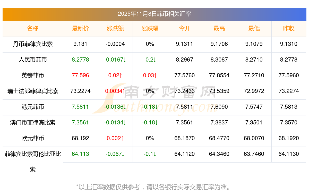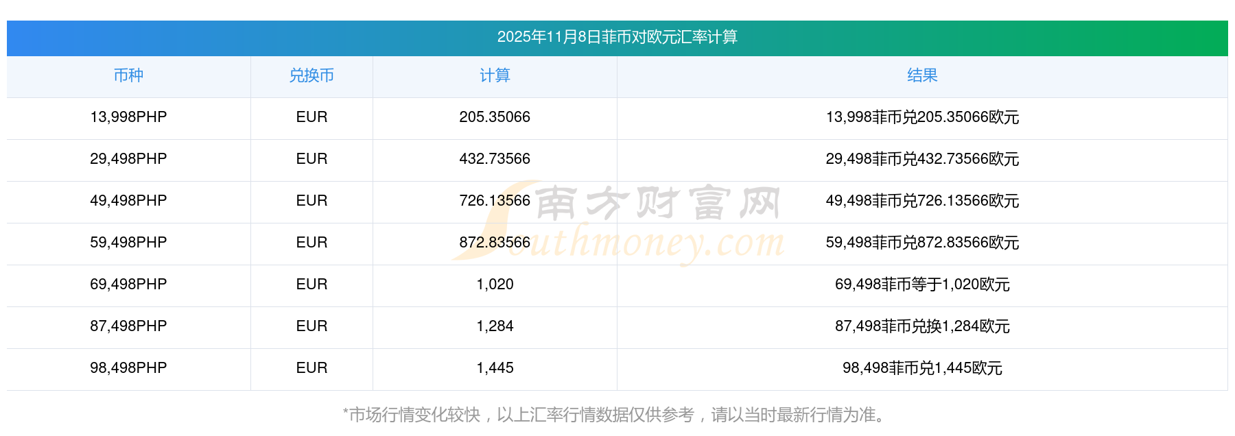 今日貨幣匯率調整:1027菲幣對歐元匯率多少?2025/11/8