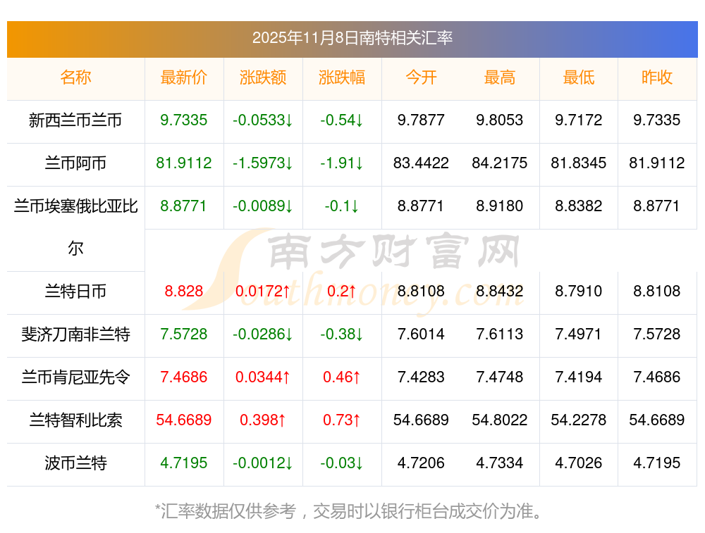 2025年11月8日南特相關(guān)匯率查詢