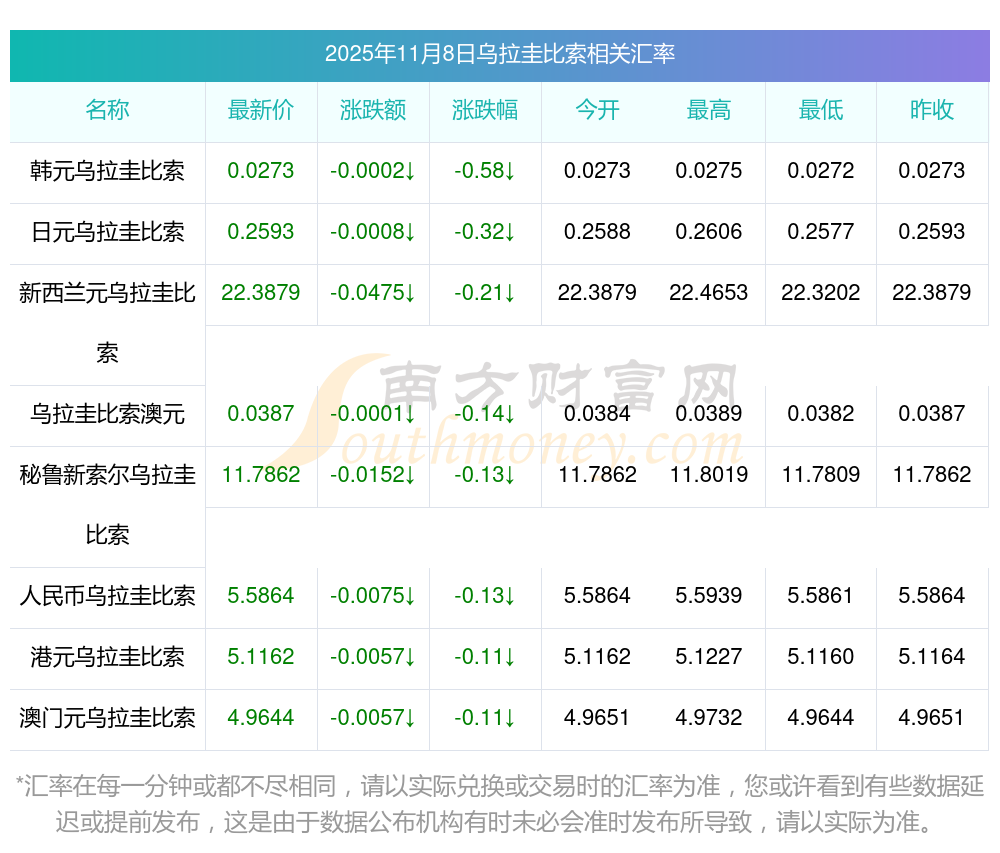2025年11月8日烏拉圭比索相關(guān)匯率查詢