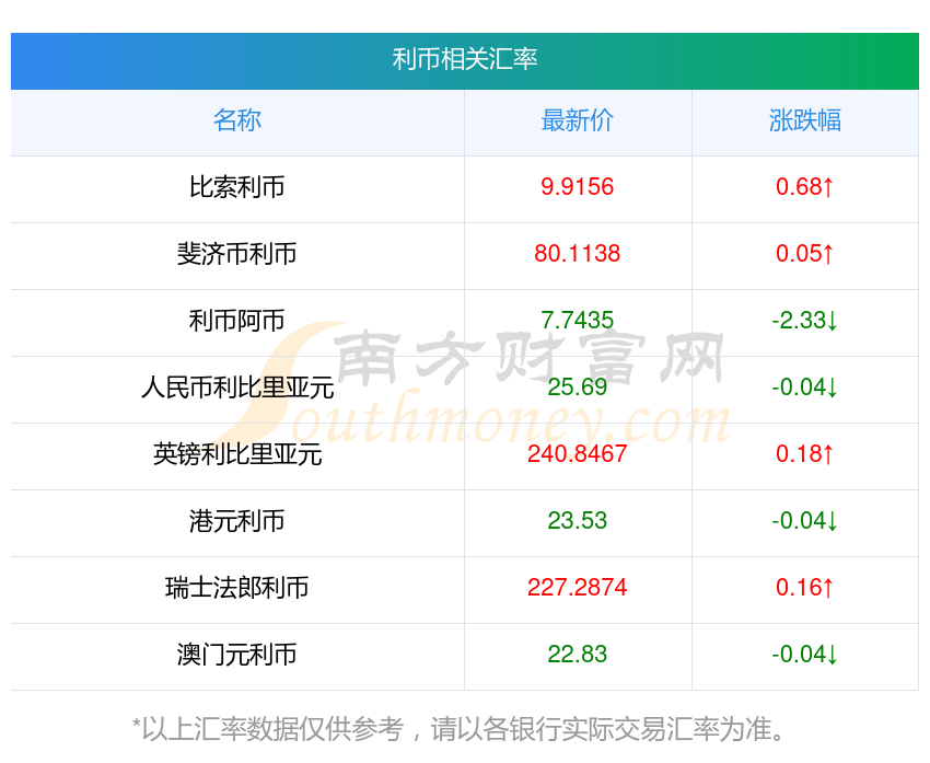 南方財富網(wǎng)為您提供利幣對阿幣匯率最新價格詳情。