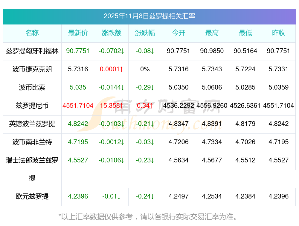 2025年11月8日茲羅提相關(guān)匯率查詢