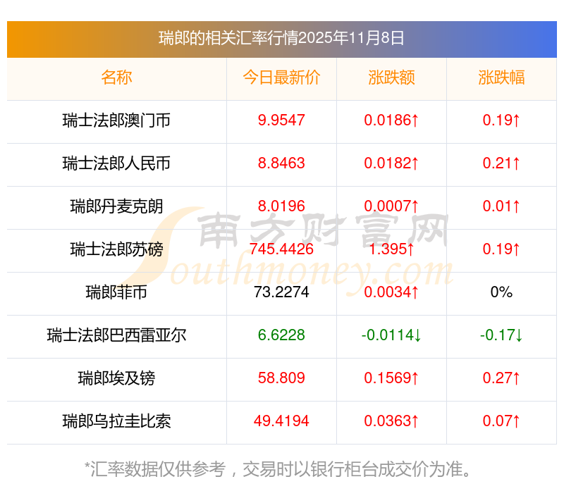 2025年11月8日瑞郎相關(guān)匯率查詢