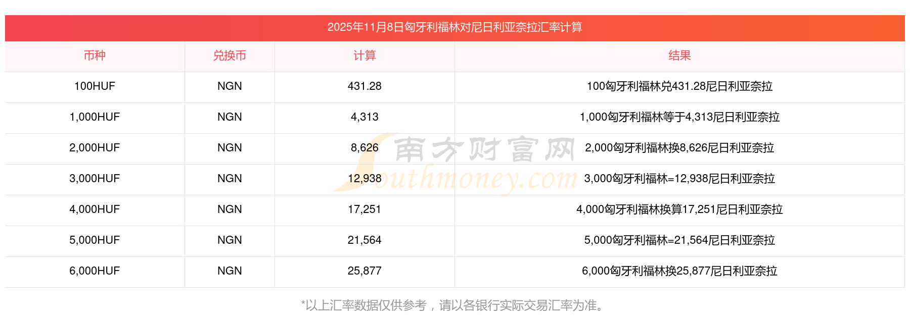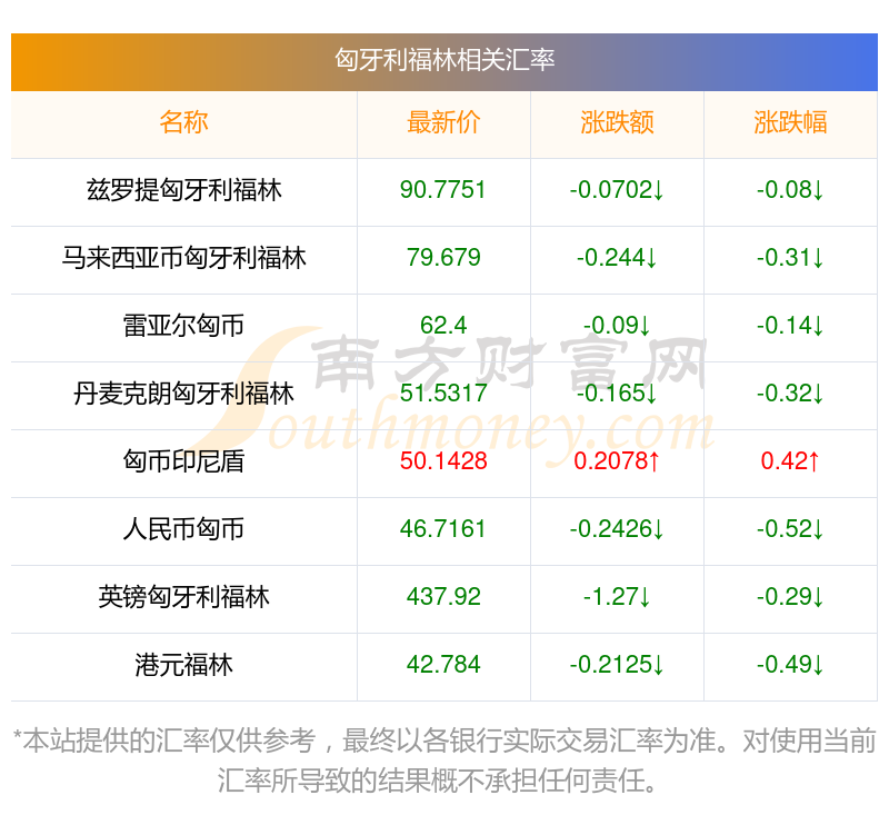 南方財富網(wǎng)為您提供匈牙利福林對尼日利亞奈拉匯率最新價格詳情。