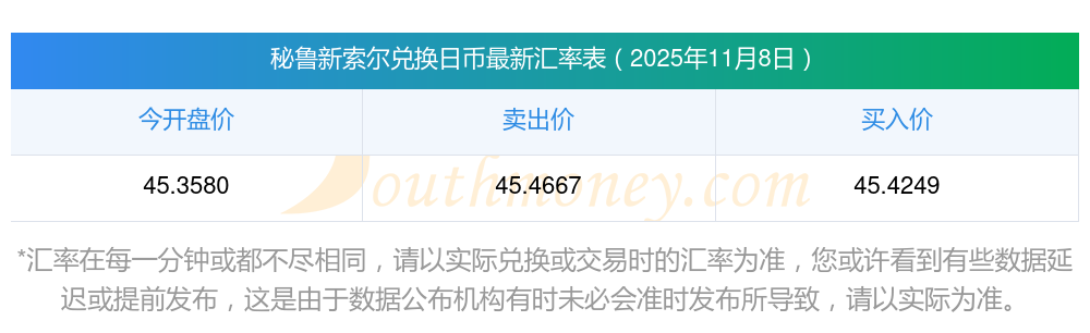 今日匯率查詢:1秘魯新索爾對日元匯率是多少?2025/11/08