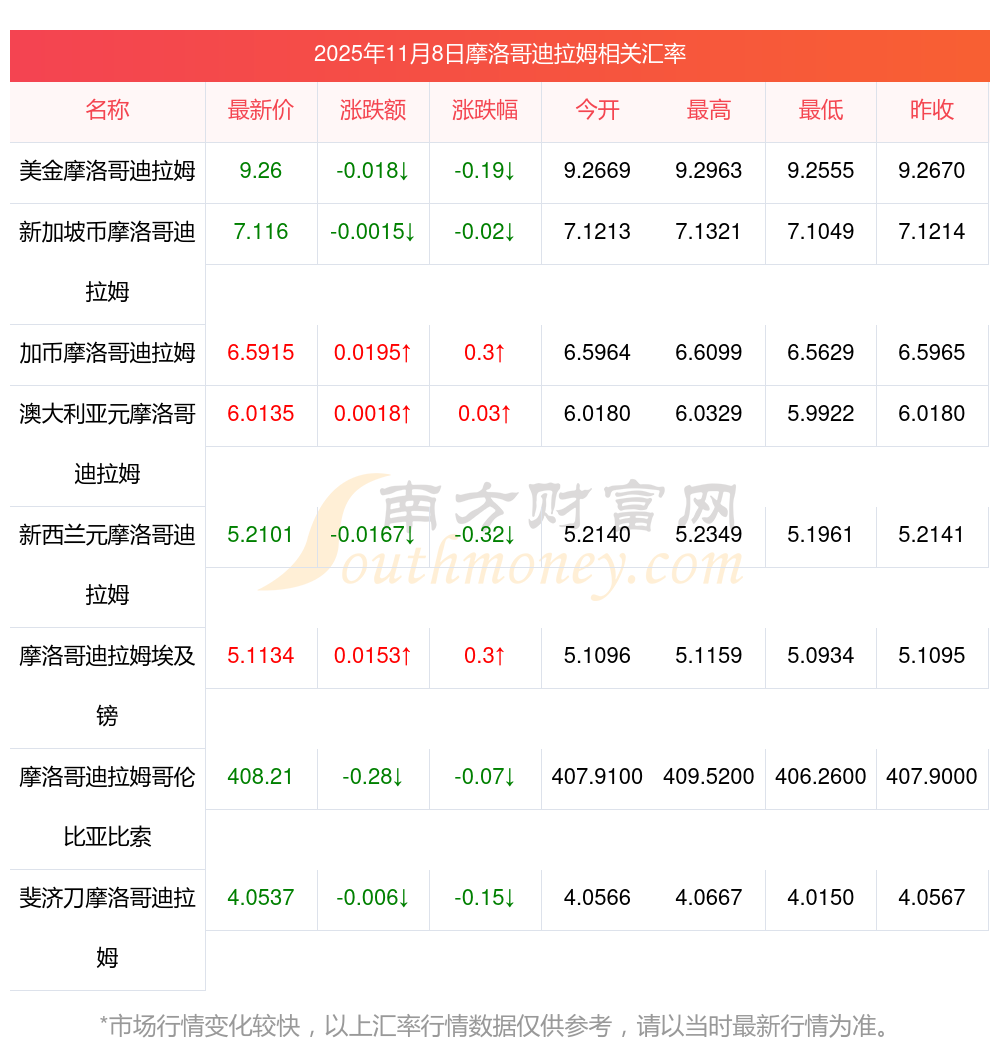 2025年11月8日摩洛哥迪拉姆相關(guān)匯率查詢