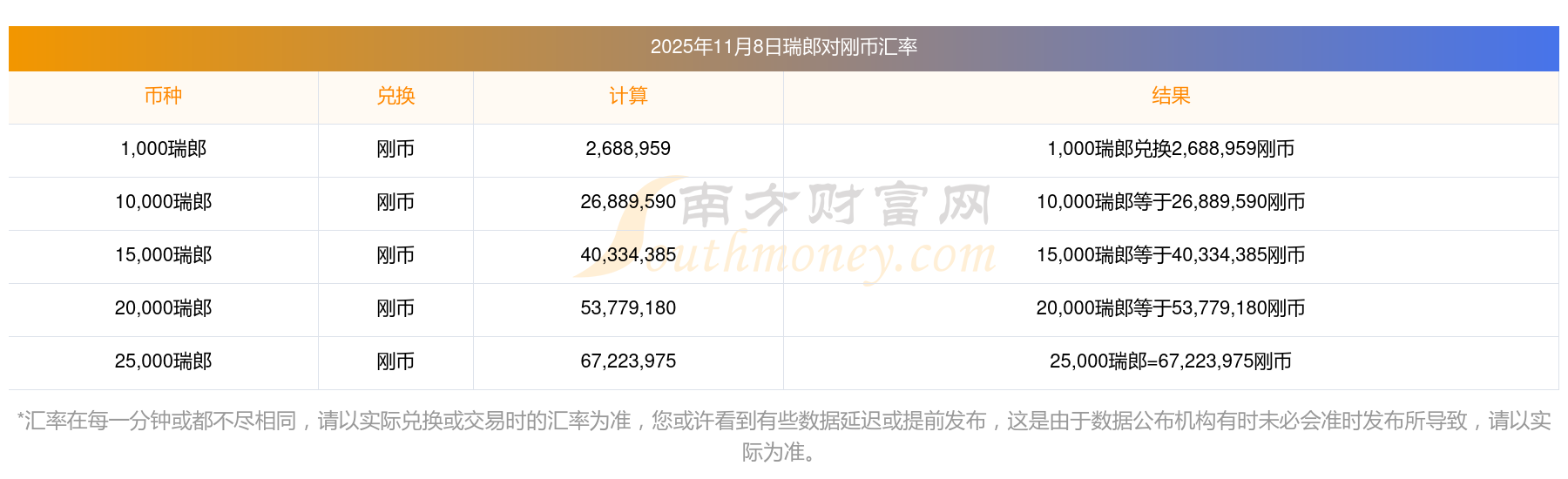 現(xiàn)在72瑞郎兌換剛幣匯率是多少_今天外匯查詢2025-11-8
