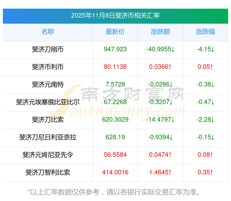 2025年11月8日斐濟幣相關(guān)匯率查詢