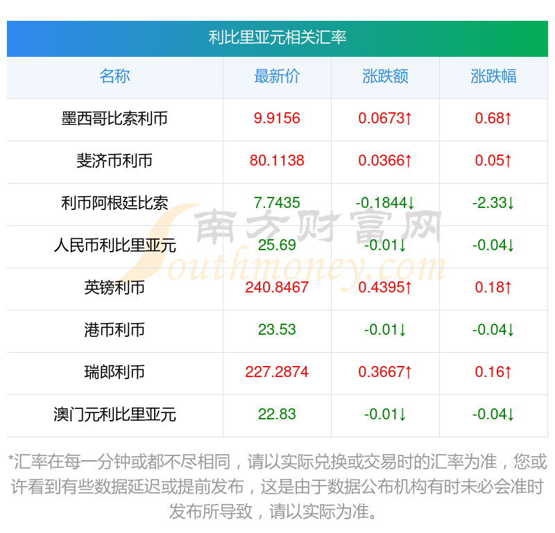 南方財富網(wǎng)為您提供利比里亞元對南特匯率最新價格詳情。