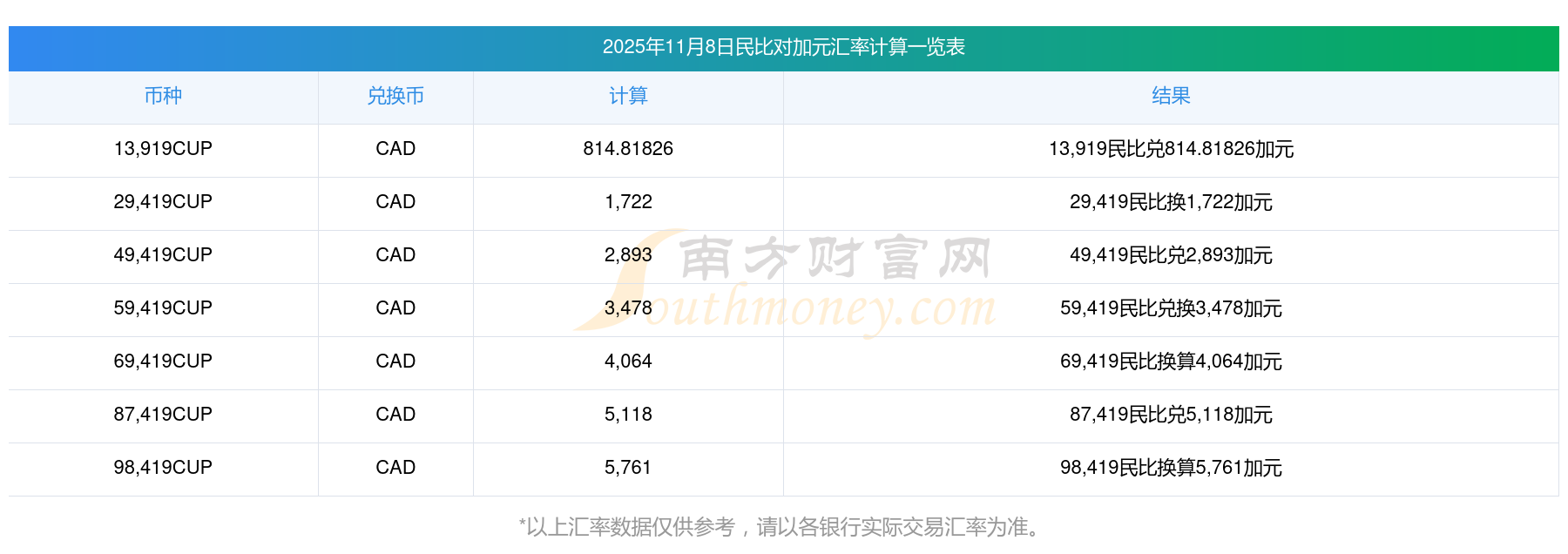 南方財(cái)富網(wǎng)為您提供民比對加元匯率最新價格詳情。