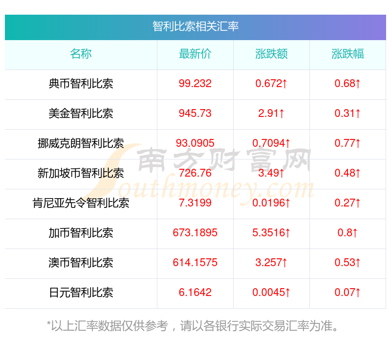 南方財富網(wǎng)為您提供智利比索對美元匯率最新價格詳情。
