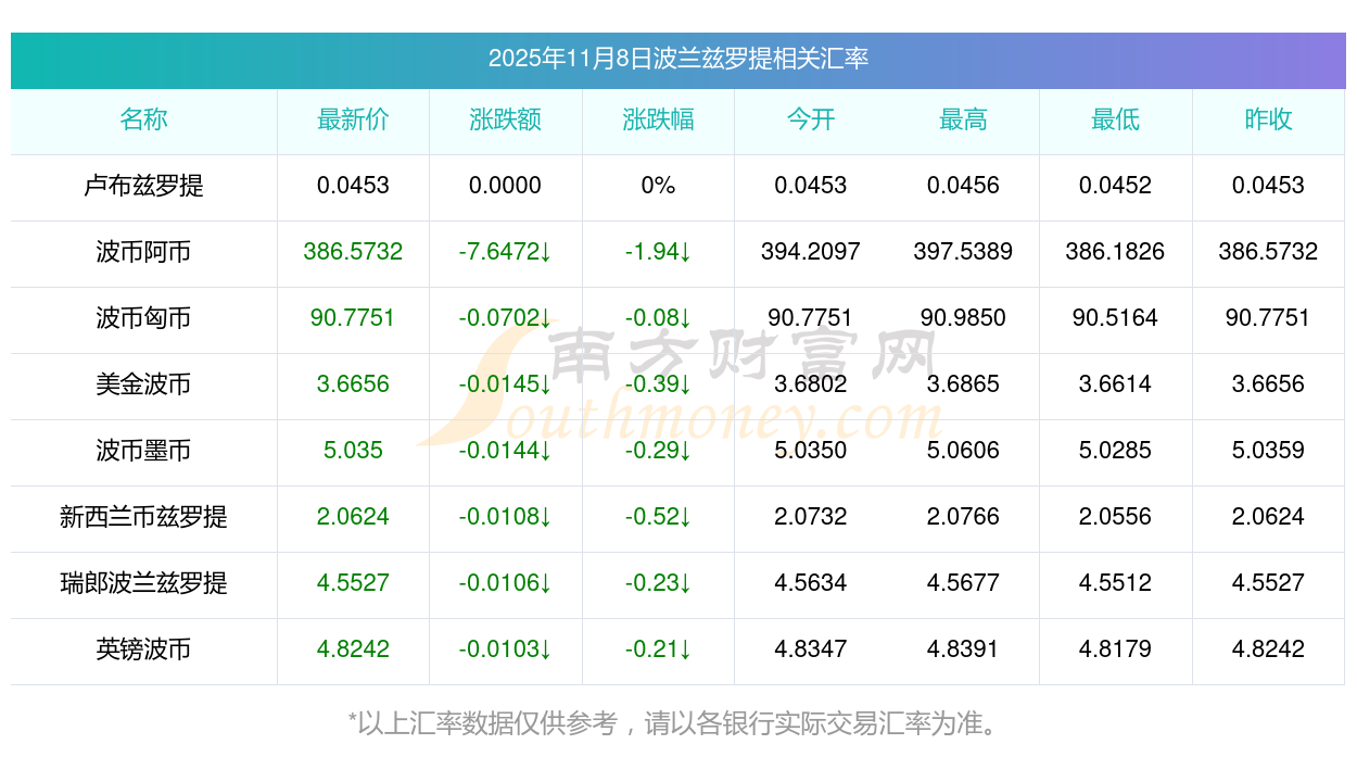 2025年11月8日波蘭茲羅提相關(guān)匯率查詢