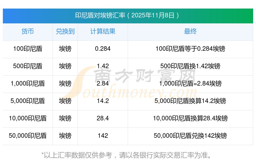 10萬印尼盾轉(zhuǎn)換埃鎊匯率_匯率價(jià)格走勢(shì) 2025/11/08