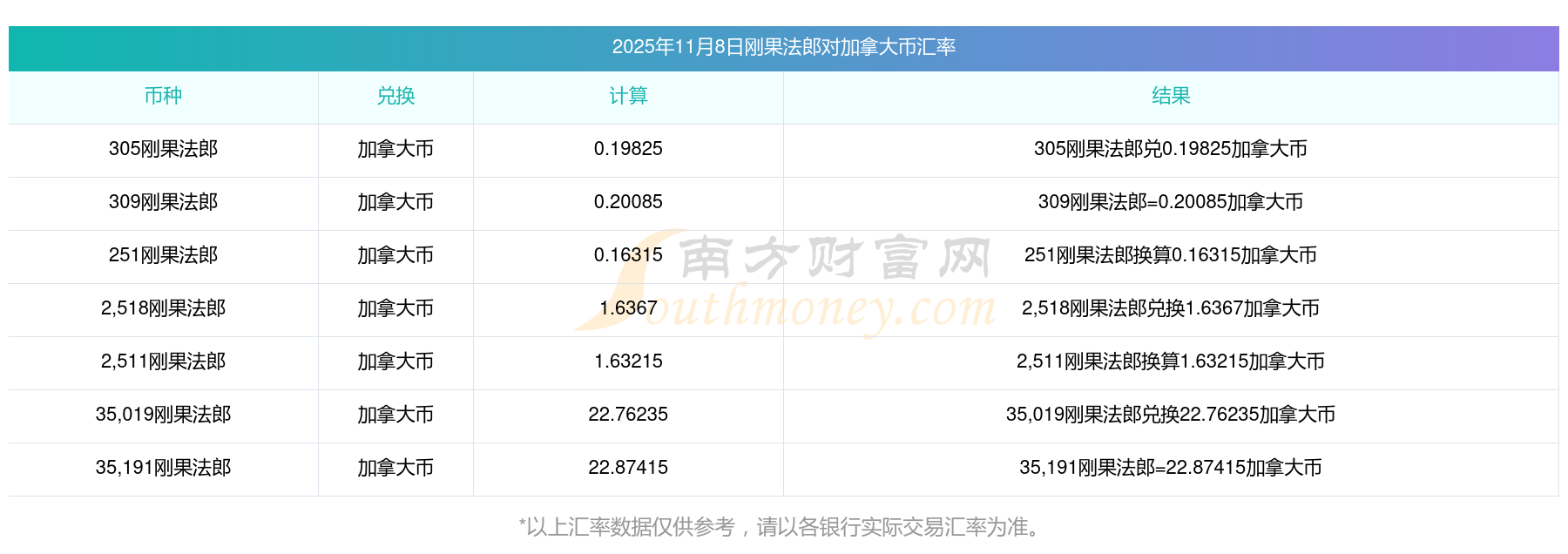 35剛果法郎兌換加拿大幣結(jié)匯行情 今天剛果法郎匯率報(bào)價(jià)查詢(xún)2025/11/08