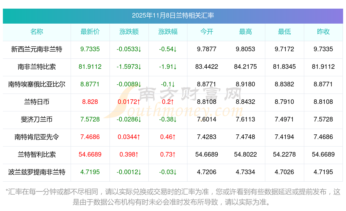今日貨幣匯率調(diào)整:1028蘭特對斐濟刀匯率多少?2025-11-8