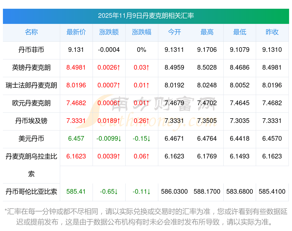 2025年11月9日丹麥克朗相關(guān)匯率查詢