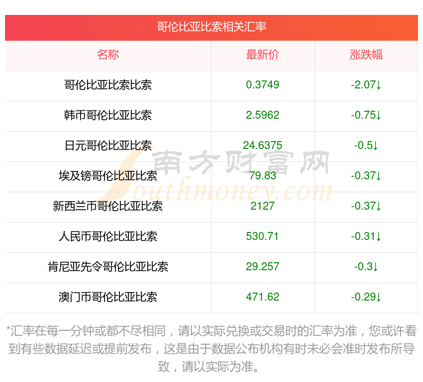 根據(jù)2025年11月9日匯率,哥倫比亞比索兌換越南盾匯率最新價6.960400,今開價6.9508,昨收價6.9604,最高價6.9820,最低價6.9365。