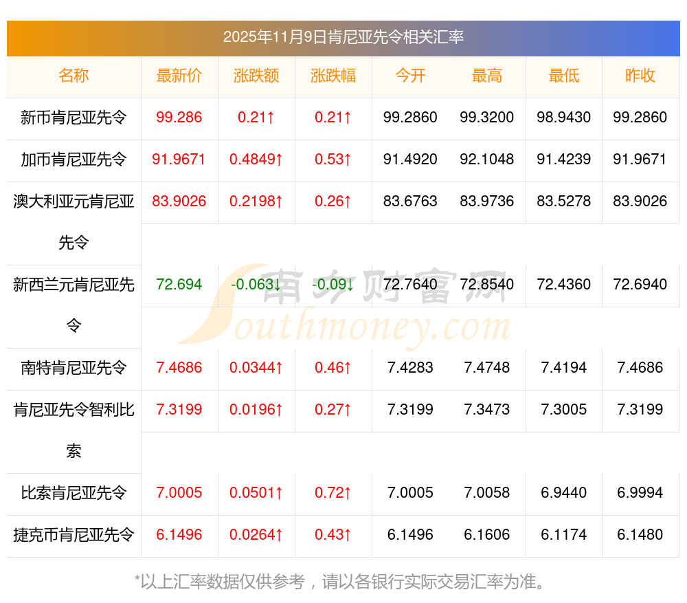 2025年11月9日肯尼亞先令相關(guān)匯率查詢