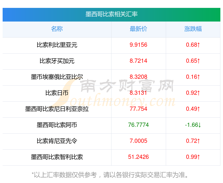 2025年11月9日墨西哥比索相關(guān)匯率查詢