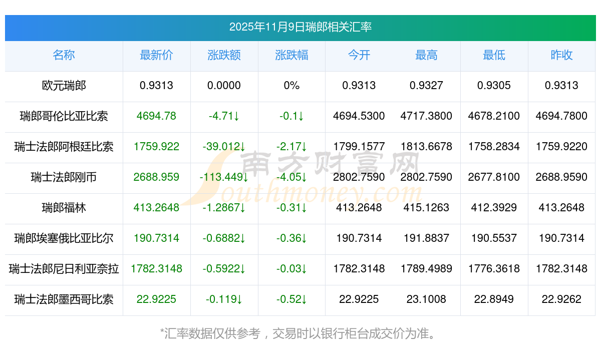 2025年11月9日瑞郎相關匯率查詢