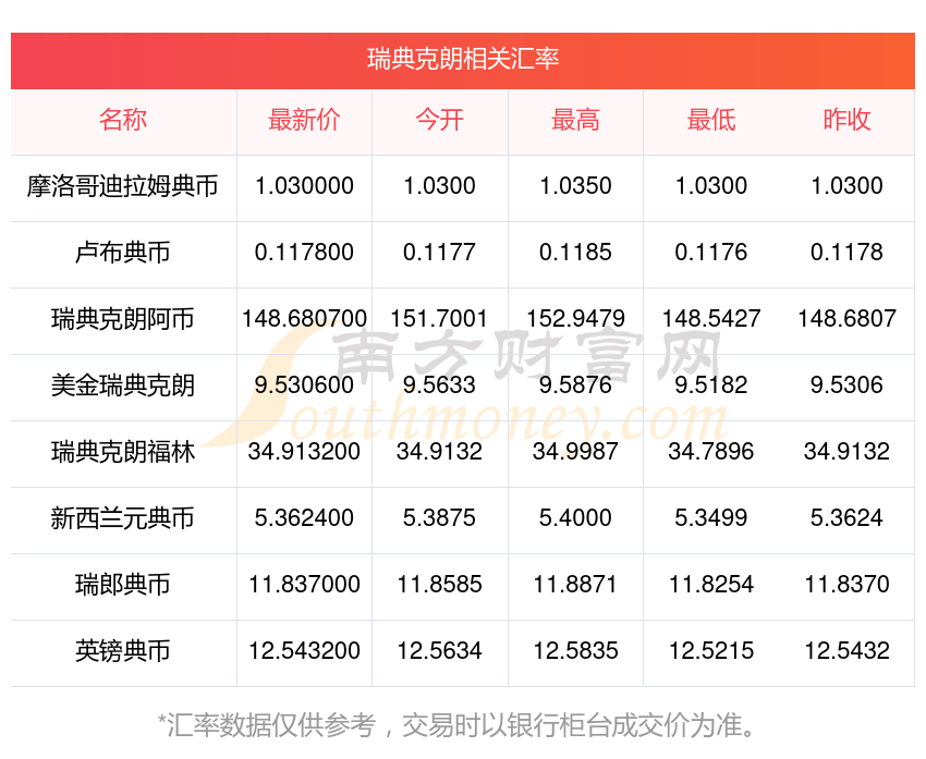 2025年11月9日瑞典克朗相關(guān)匯率查詢