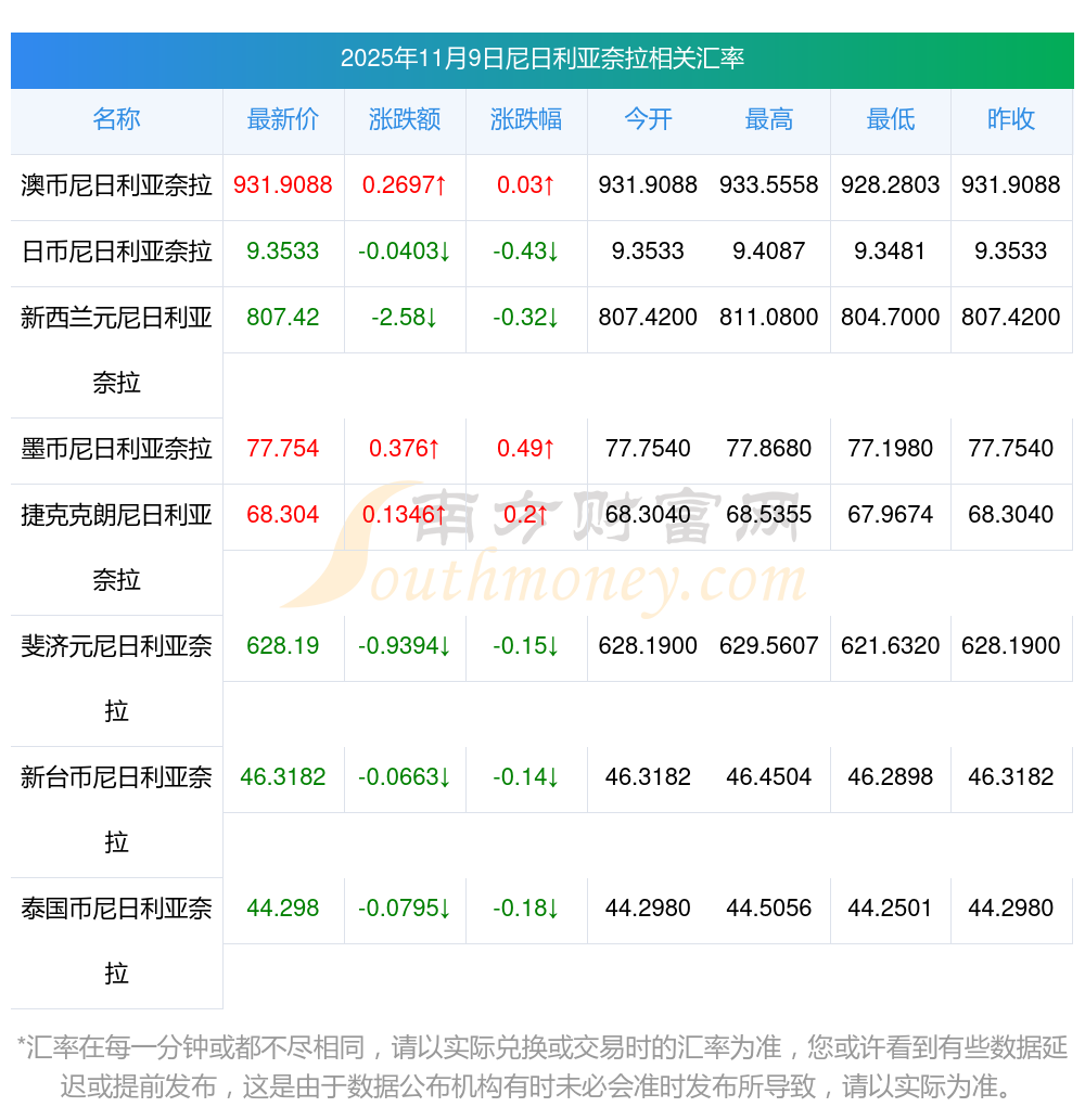 2025年11月9日尼日利亞奈拉相關(guān)匯率查詢