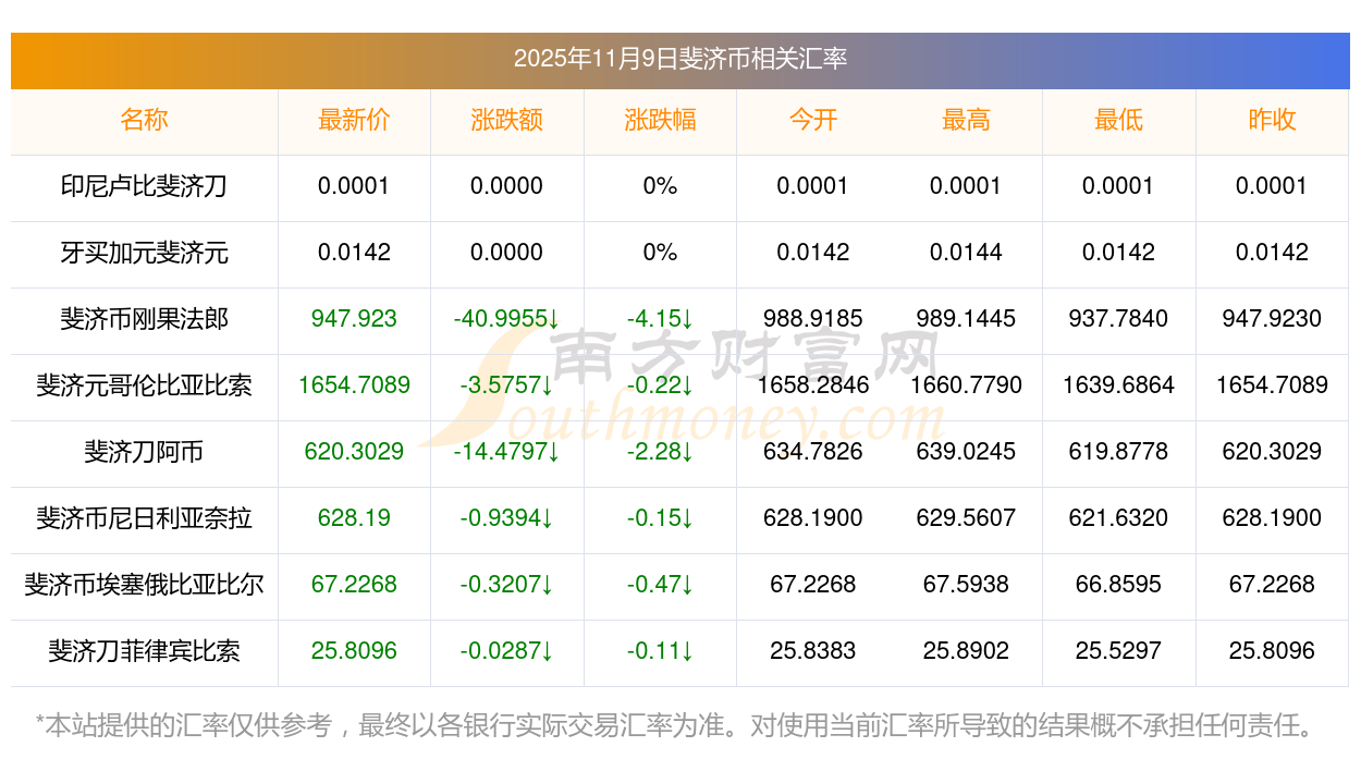 2025年11月9日斐濟(jì)幣相關(guān)匯率查詢