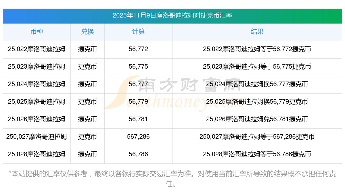 摩洛哥迪拉姆今天匯率:15摩洛哥迪拉姆兌捷克幣匯率查詢2025年11月9日