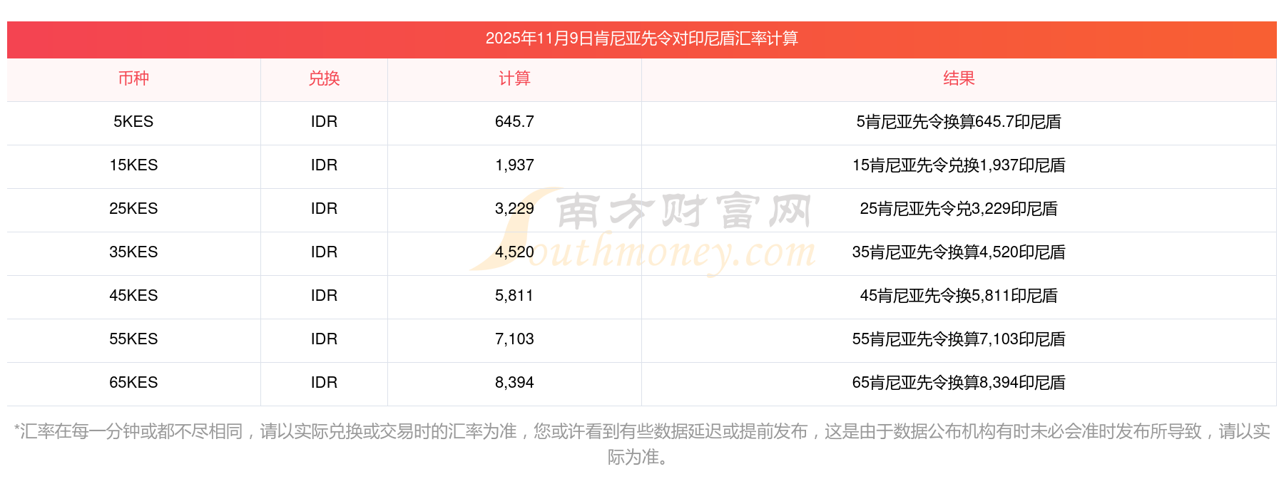 南方財富網(wǎng)為您提供肯尼亞先令對印尼盾匯率最新價格詳情。