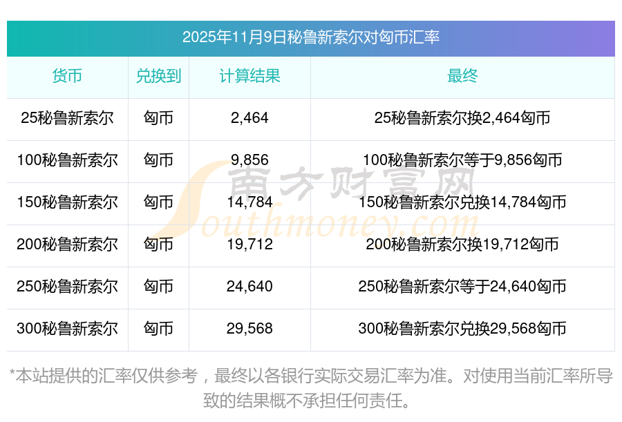 南方財(cái)富網(wǎng)為您提供秘魯新索爾兌換匈幣匯率最新價格詳情。