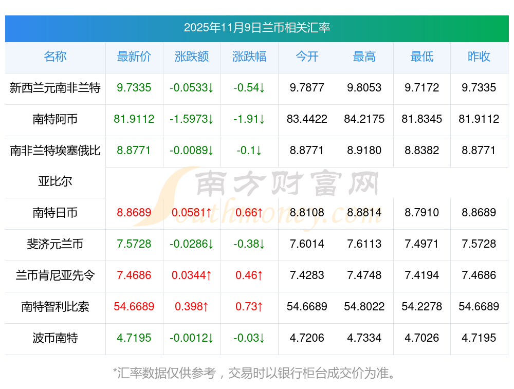 2025年11月9日蘭幣相關(guān)匯率查詢