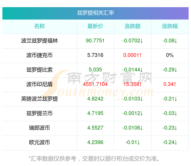 南方財富網(wǎng)為您提供茲羅提對比索匯率最新價格詳情。