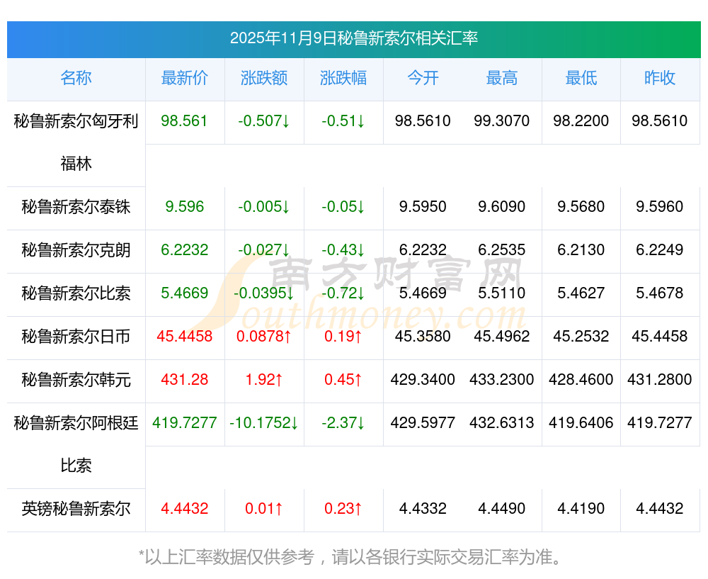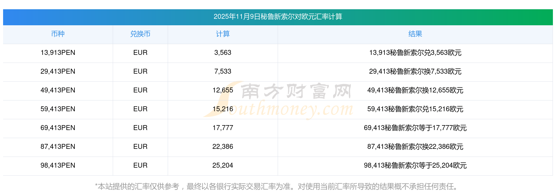 今日更新秘魯新索爾兌歐元匯率計算?11月9日