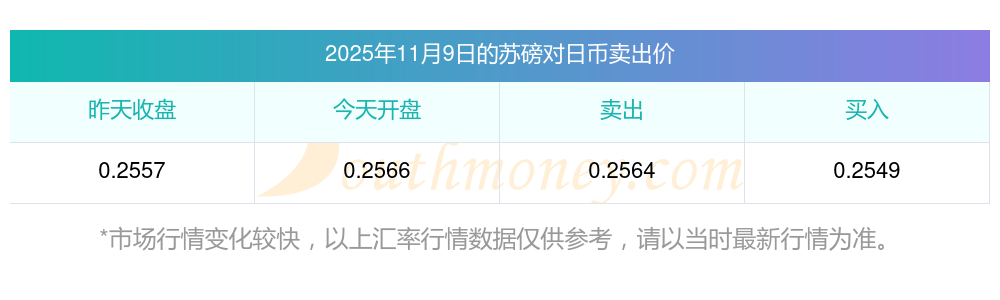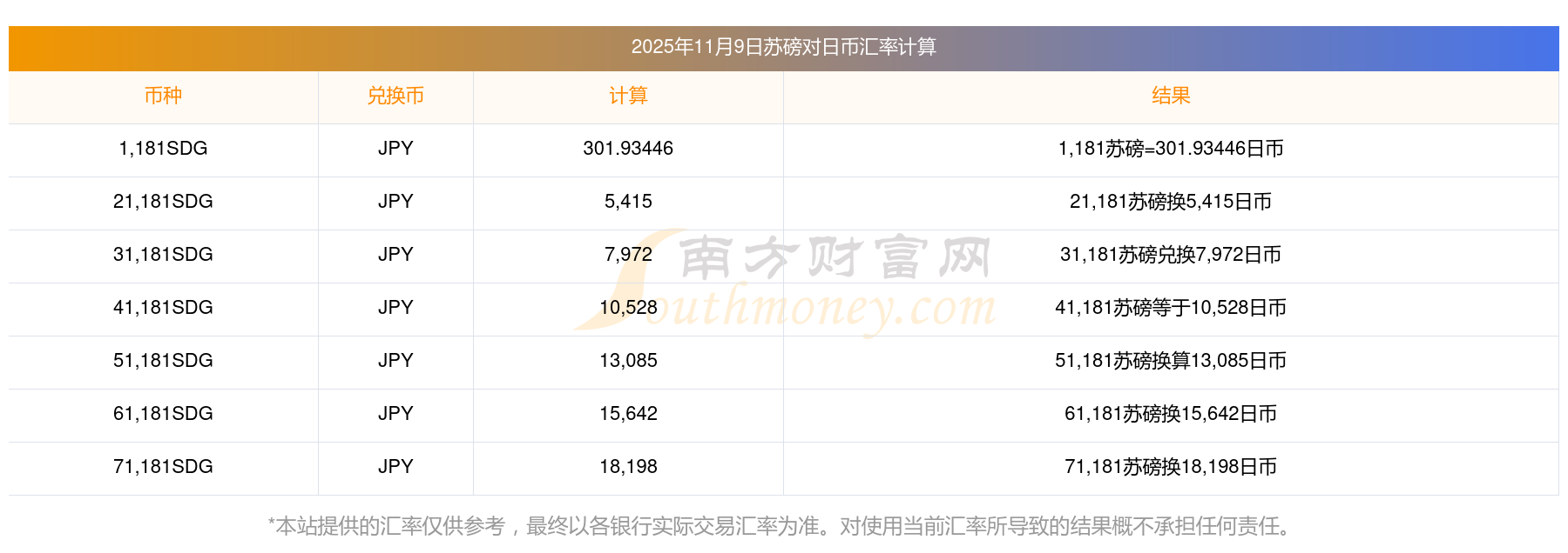 蘇丹鎊今日匯率行情:10蘇丹鎊等于多少日元?2025/11/9