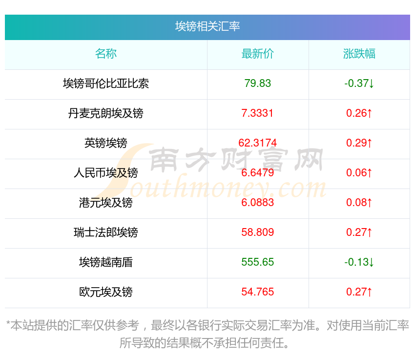 南方財富網(wǎng)為您提供埃鎊對越南盾匯率最新價格詳情。