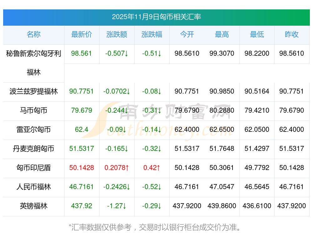 2025年11月9日匈幣相關(guān)匯率查詢