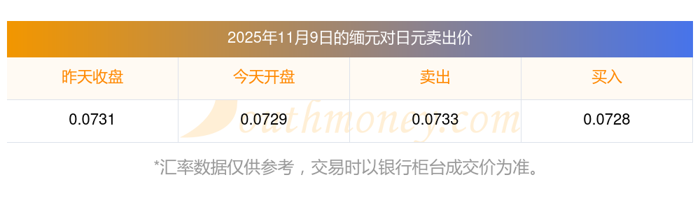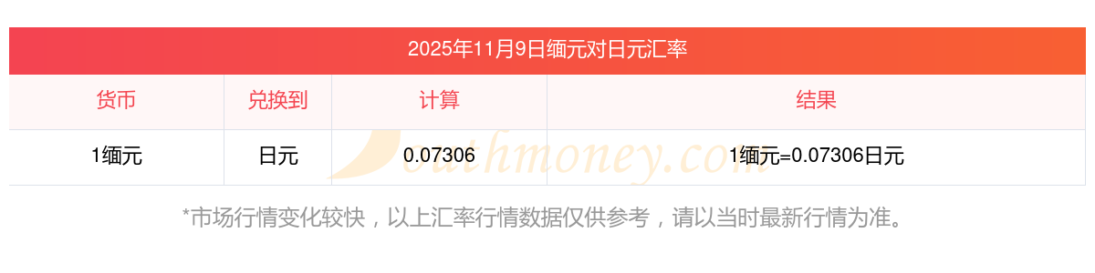 1緬元對(duì)日元多少?今日日元匯率一覽2025/11/9