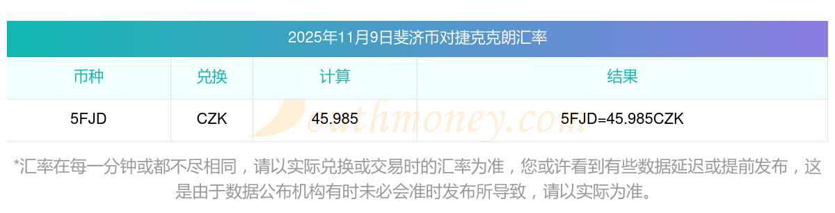 匯率換算 今天39斐濟(jì)幣能換捷克克朗 是多少