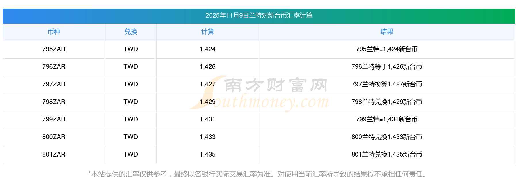 蘭特對(duì)新臺(tái)幣匯率多少_今天匯率查詢2025年11月9日