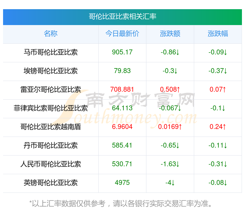 南方財富網(wǎng)為您提供哥倫比亞比索對韓幣匯率最新價格詳情。