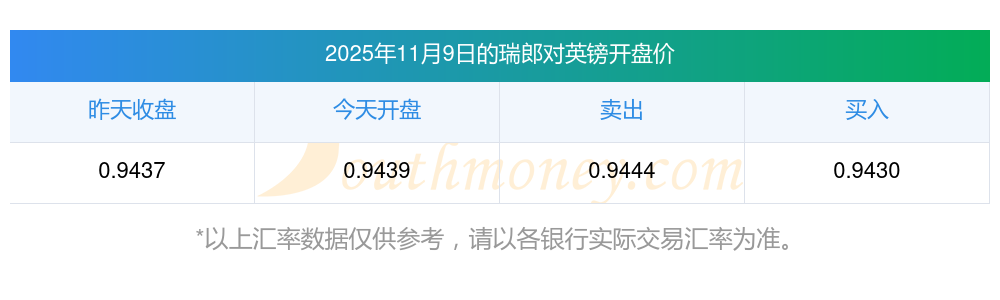 現(xiàn)在瑞士法郎與英鎊的匯率是多少?2025-11-09