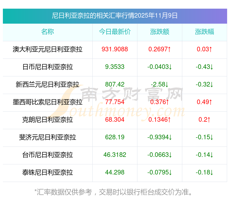 2025年11月9日尼日利亞奈拉相關(guān)匯率查詢