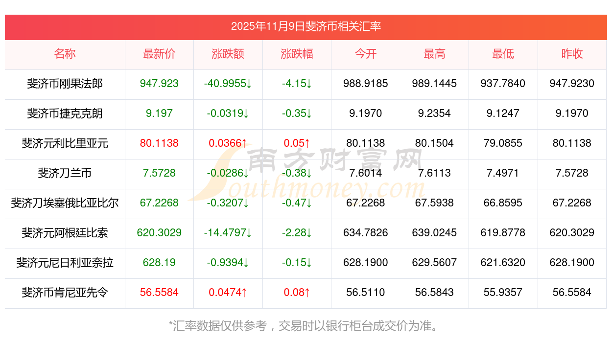 2025年11月9日斐濟(jì)幣相關(guān)匯率查詢