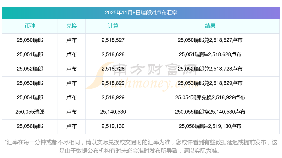 南方財富網(wǎng)為您提供瑞郎對盧布匯率最新價格詳情。