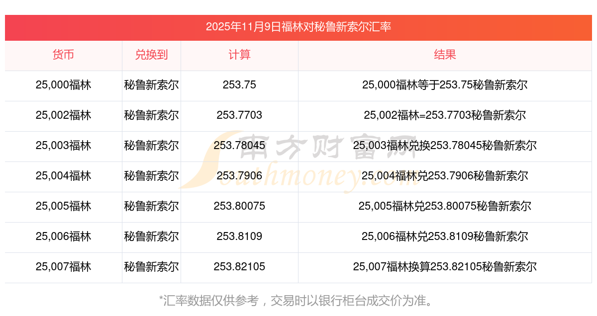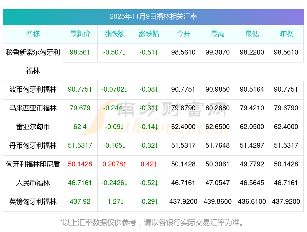 今日外幣匯率 | 福林換秘魯新索爾匯率多少? 2025-11-09